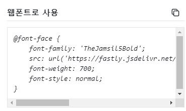 웹폰트로 사용하려면 아래의 코드를 복사해서 css에 넣어줍니다.